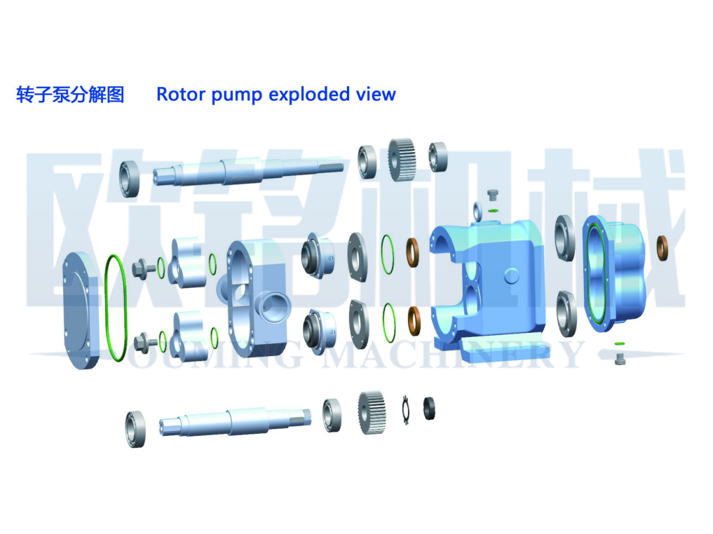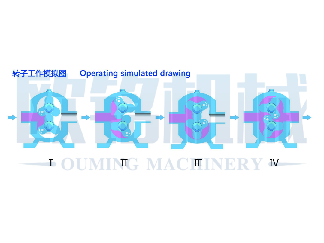 該(gai)產(chan)品借(jie)助于工作腔里的(de)(de)多個固定容(rong)積輸送(song)(song)單位的(de)(de)周期性轉(zhuan)化(hua)來達到(dao)輸送(song)(song)流體的(de)(de)目的(de)(de)。原動(dong)機(ji)(ji)的(de)(de)機(ji)(ji)械能(neng)通過泵(beng)直接轉(zhuan)化(hua)為輸送(song)(song)流體的(de)(de)壓(ya)(ya)力能(neng),泵(beng)的(de)(de)流量只(zhi)取(qu)決于工作腔容(rong)積變(bian)化(hua)值以及其(qi)在(zai)單位時間內的(de)(de)變(bian)化(hua)頻率,而(理論(lun)上(shang))與排(pai)出(chu)壓(ya)(ya)力無關;轉(zhuan)子泵(beng)依靠兩個同步(bu)反(fan)向轉(zhuan)動(dong)的(de)(de)轉(zhuan)子(轉(zhuan)子葉數為2-8)在(zai)旋轉(zhuan)過程中(zhong)于進(jin)料(liao)(liao)口處產(chan)生吸力(真空(kong)度),兩轉(zhuan)子將轉(zhuan)子室分隔成幾個小空(kong)間,在(zai)傳(chuan)動(dong)軸(zhou)的(de)(de)帶動(dong)下進(jin)行反(fan)方(fang)向旋轉(zhuan),介質即被輸送(song)(song)至出(chu)料(liao)(liao)口,從而產(chan)生了較高(gao)(gao)的(de)(de)排(pai)放(fang)壓(ya)(ya)力,如此往復循環,特別適合(he)中(zhong)高(gao)(gao)粘度介質的(de)(de)輸送(song)(song)。