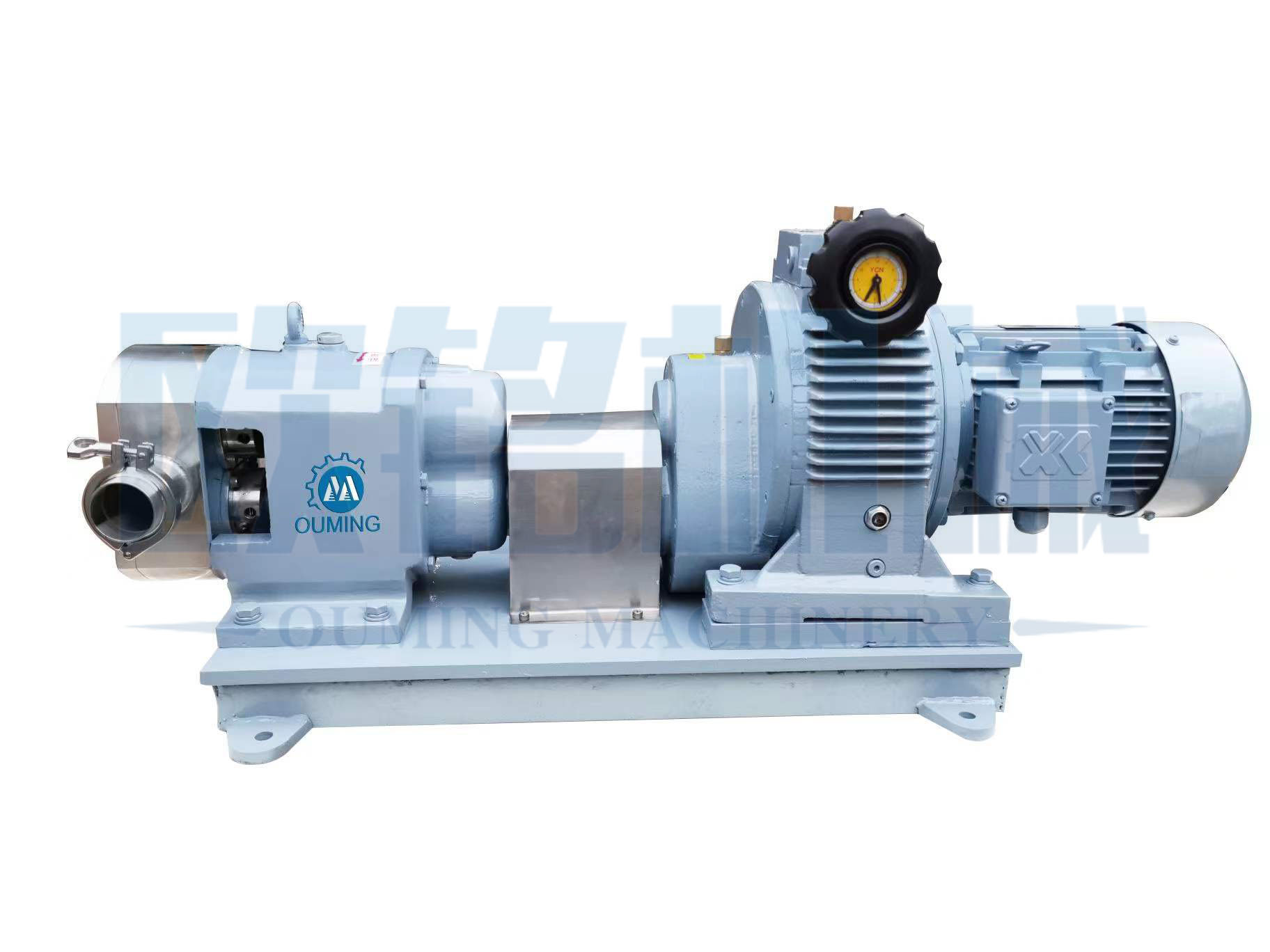 該(gai)產品借助(zhu)于(yu)工(gong)作腔里的(de)(de)(de)多個(ge)固定容(rong)(rong)積輸(shu)送(song)單位的(de)(de)(de)周期性轉(zhuan)化(hua)來達到輸(shu)送(song)流(liu)體(ti)的(de)(de)(de)目的(de)(de)(de)。原動(dong)機的(de)(de)(de)機械(xie)能(neng)通過(guo)泵(beng)直接轉(zhuan)化(hua)為輸(shu)送(song)流(liu)體(ti)的(de)(de)(de)壓(ya)力能(neng),泵(beng)的(de)(de)(de)流(liu)量(liang)只(zhi)取(qu)決于(yu)工(gong)作腔容(rong)(rong)積變化(hua)值(zhi)以及其(qi)在(zai)單位時間內的(de)(de)(de)變化(hua)頻(pin)率,而(理論上)與排出壓(ya)力無關;轉(zhuan)子(zi)泵(beng)依靠兩個(ge)同步反向轉(zhuan)動(dong)的(de)(de)(de)轉(zhuan)子(zi)(轉(zhuan)子(zi)葉數為2-8)在(zai)旋轉(zhuan)過(guo)程中于(yu)進(jin)料口(kou)處(chu)產生吸力(真空度(du)),兩轉(zhuan)子(zi)將轉(zhuan)子(zi)室分隔(ge)成幾個(ge)小空間,在(zai)傳動(dong)軸的(de)(de)(de)帶動(dong)下進(jin)行反方向旋轉(zhuan),介質即被輸(shu)送(song)至出料口(kou),從而產生了較高(gao)的(de)(de)(de)排放壓(ya)力,如(ru)此往復循(xun)環,特別適合中高(gao)粘度(du)介質的(de)(de)(de)輸(shu)送(song)。